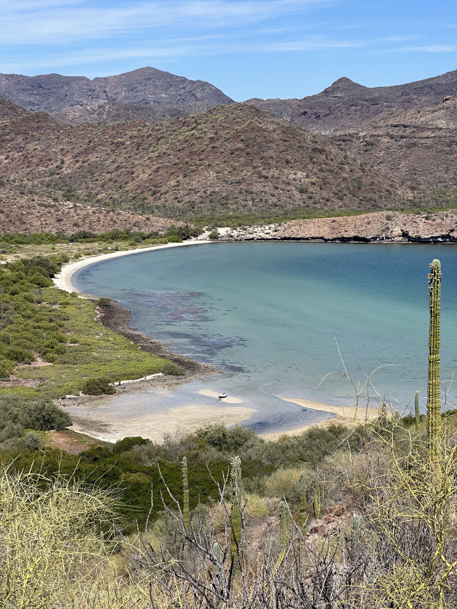 A couple of hundred miles from La Paz lies a bay clinging to the side of the Baja peninsula called Bahía Concepción. It’s reasonably long but narrow enough that you can always see both sides. It’s entered from the north and shaped like the gap between an open thumb and pointer finger.