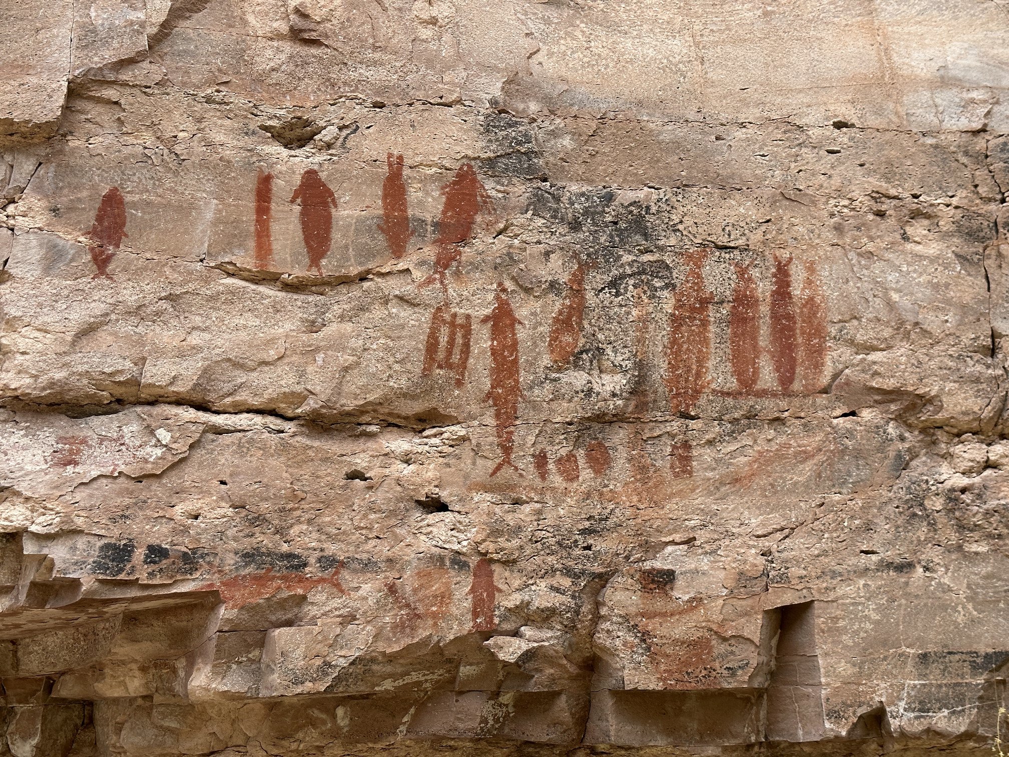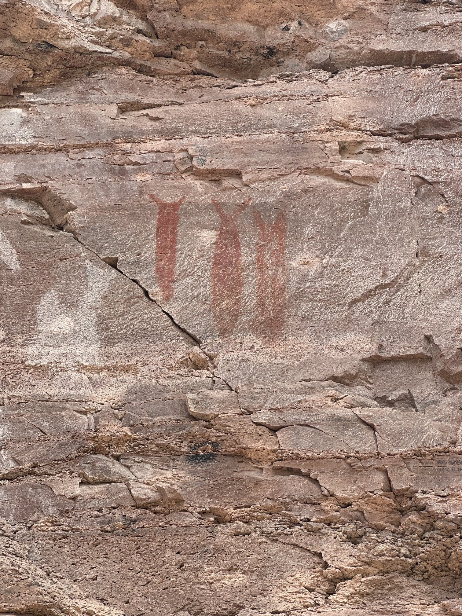 Our biggest exploration was to head south for a day hike into the arroyos on the eastern side of the bay. With the simple bathymetry map in hand we eased our way south and found sufficient depth the whole way. We anchored off an arroyo exit and followed it inland. We were treated to a beautiful canyon that was filled with rock paintings. We are all enthralled by these. We’ve seen reports that these are 6,000 - 7,000 years old, but not seen any scholarly work on the subject.